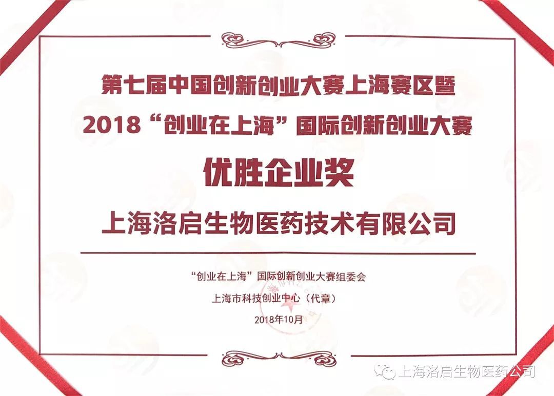 【喜讯】30116金沙js9(中国)生物荣获2018“创业在上海”国际创新创业大赛优胜奖