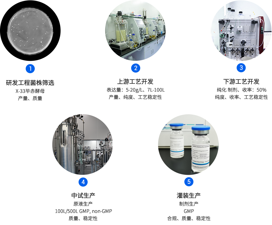 30116金沙js9(中国)生物已成功建立毕赤酵母CMC平台,现在已具备多个完整项目开发经验。毕赤酵母CMC平台90%以上的项目产量在1g/L以上,纯化平台工艺,其整体回收率在50%以上。从细胞株构建到蛋白纯化仅需3-4个月,极大地缩短了项目开发时间。